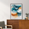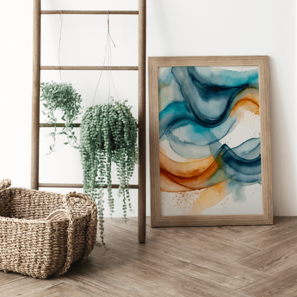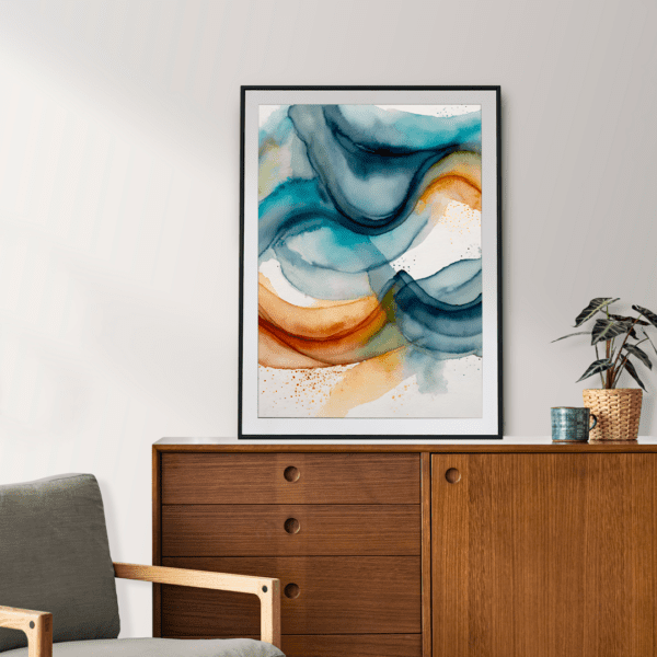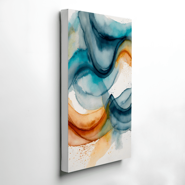 “The ‘Dance of the Tides’ is not just a painting; it’s an experience, a journey through unknown seas and uncharted skies. Each meticulously applied brushstroke weaves a visual narrative that challenges perception and evokes a profound sense of awe. The blue tones, reminiscent of the infinite ocean, harmoniously blend with golden and terracotta hues that invoke the majesty of dawn. This masterpiece is not confined by the limits of the frame; it transcends the canvas to immerse the viewer in a world where art and emotion converge. Acquiring the ‘Dance of the Tides’ is not merely obtaining a piece of art; it’s inviting a slice of the ethereal cosmos into your personal space, transforming every gaze into a visual odyssey that lingers long after one looks away. Discover the visual symphony that has captivated critics and art enthusiasts alike; make this unique piece yours today at Printzzy.com.”
