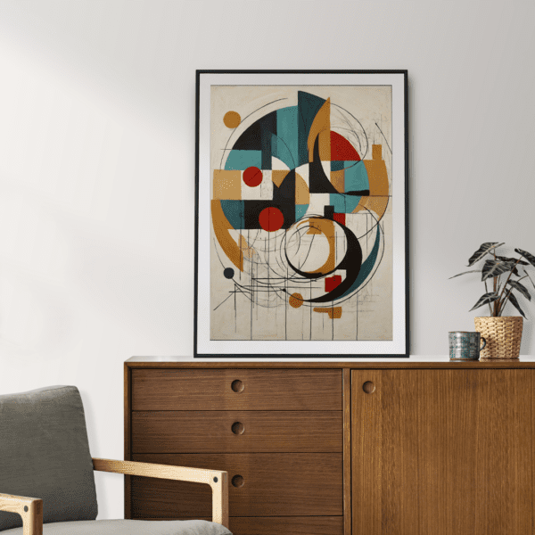 At PRINTZZY.COM, we pride ourselves on presenting works that not only beautify spaces but also provoke reflection. ‘Geometric Harmony’ is more than a painting; it is a visual dialogue where each shape and color tells a unique story, inviting the viewer to get lost in its intricate dance. Acquire this exclusive piece and transform your space into a private gallery of modern sophistication and timeless style.”
