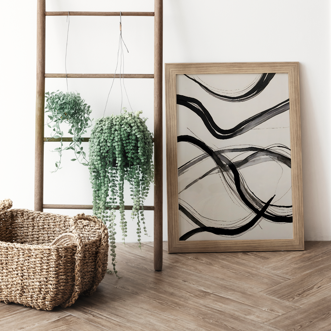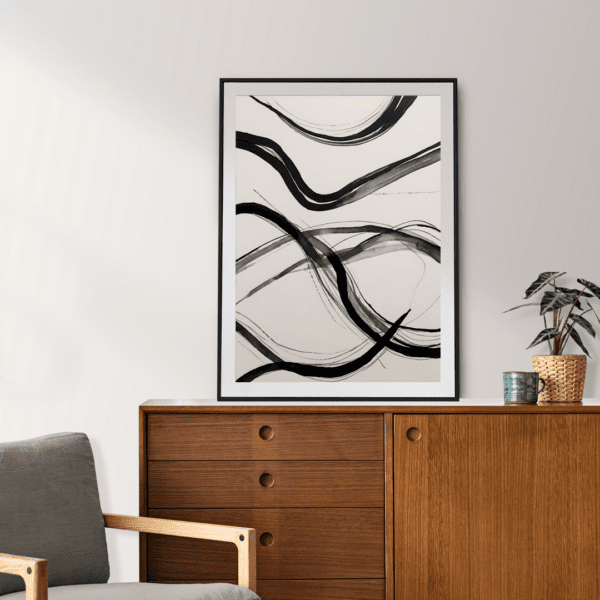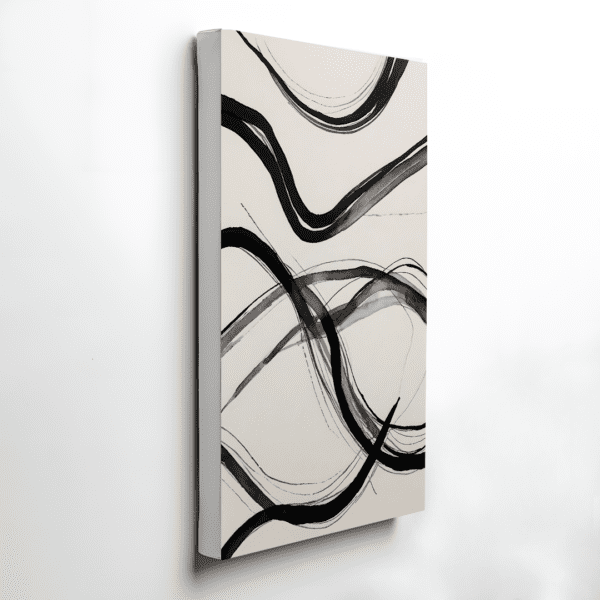 Step into a world where artistry and emotion intertwine in “Harmony in Motion.” This exquisite piece, exclusive to Printzzy.com, captures the essence of dynamic equilibrium. The artist employs a masterful technique, where black ink swirls with grace, weaving through the canvas like an elegant ballet of light and shadow.